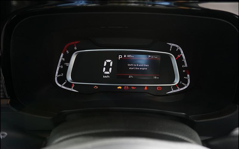 Where the Sonet really scores is with cabin quality. The choice of materials used gives a quality feel that’s not just better than rivals (the Venue included), but also cars of a segment above. The instrument cluster has an analogue tachometer on the left + analogue temperature / fuel gauges on the right. A digital speedometer with a 4.2″ MID are in the middle. This SUV’s instrument cluster contains tyre pressure monitoring system, Distance to Empty counter, Average Fuel Consumption and Outside Temperature Display.
